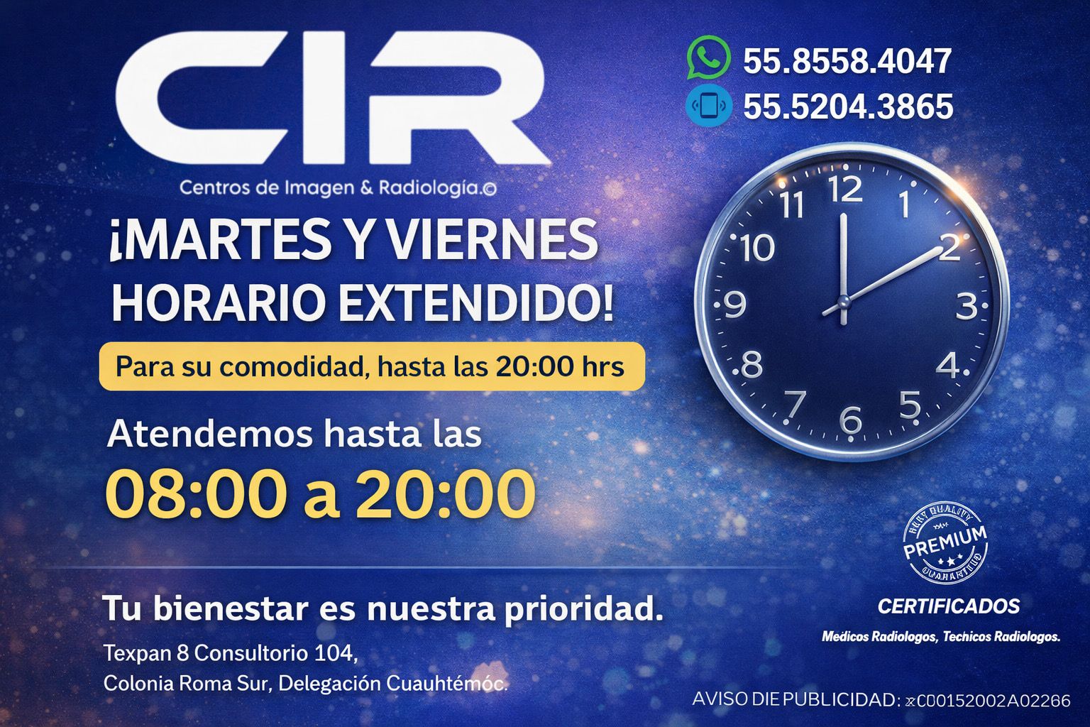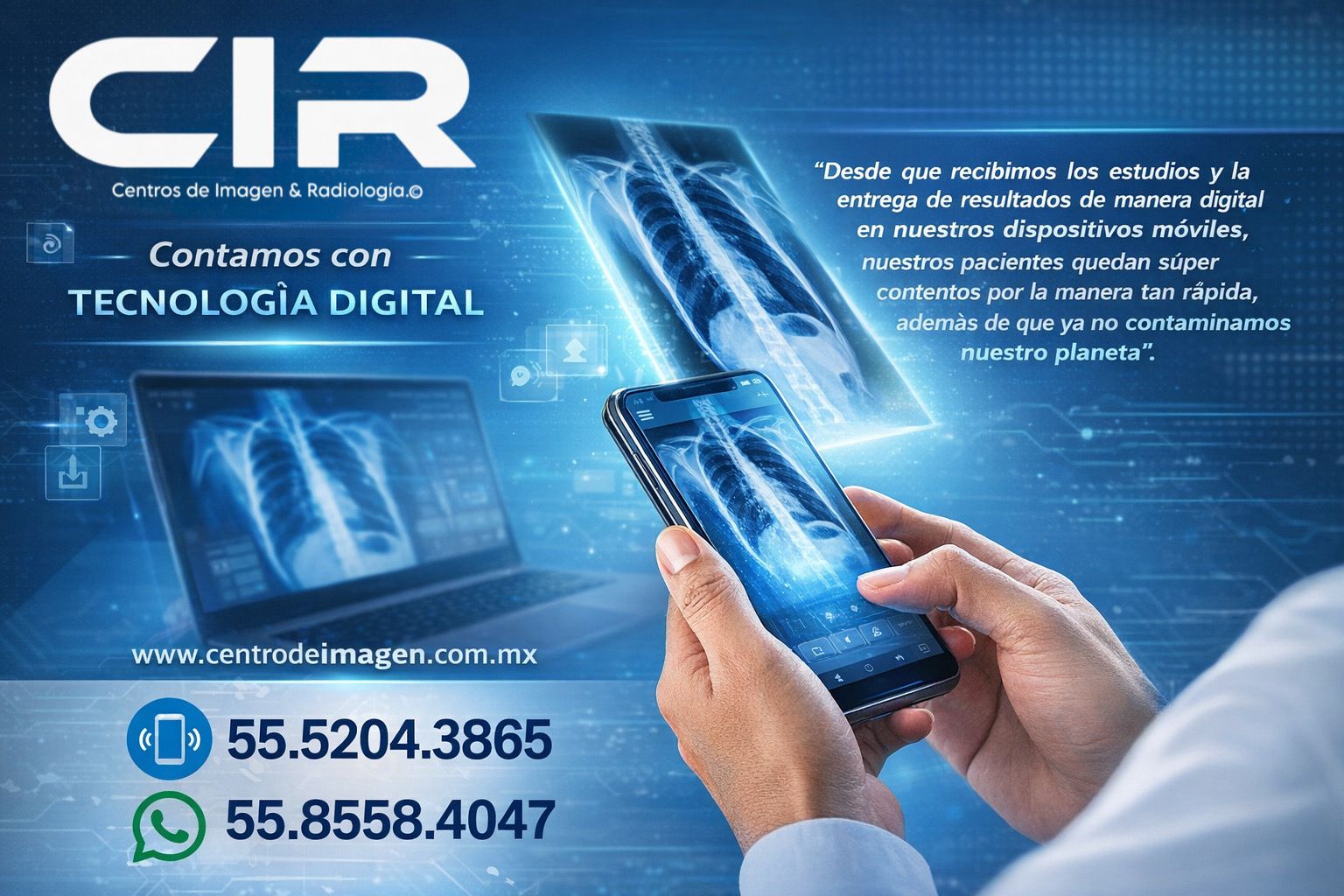 En CIR CENTROS DE IMAGEN & RADIOLOGIA combinamos tecnología avanzada, experiencia médica y un trato humano para ofrecer estudios de diagnóstico confiables, tanto en nuestras instalaciones como a domicilio y en empresas.