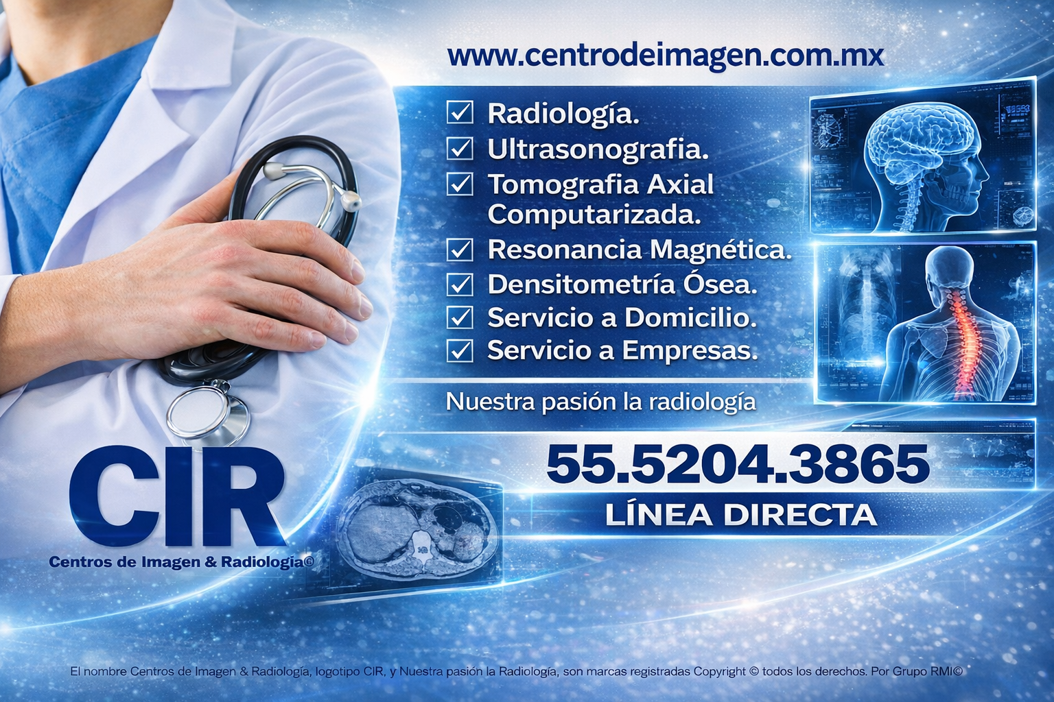 Las imágenes , logotipos y Nombre CIR Centros de Imagen y Radiología© , son marcas registradas y prioridad de Grupo RMI© .